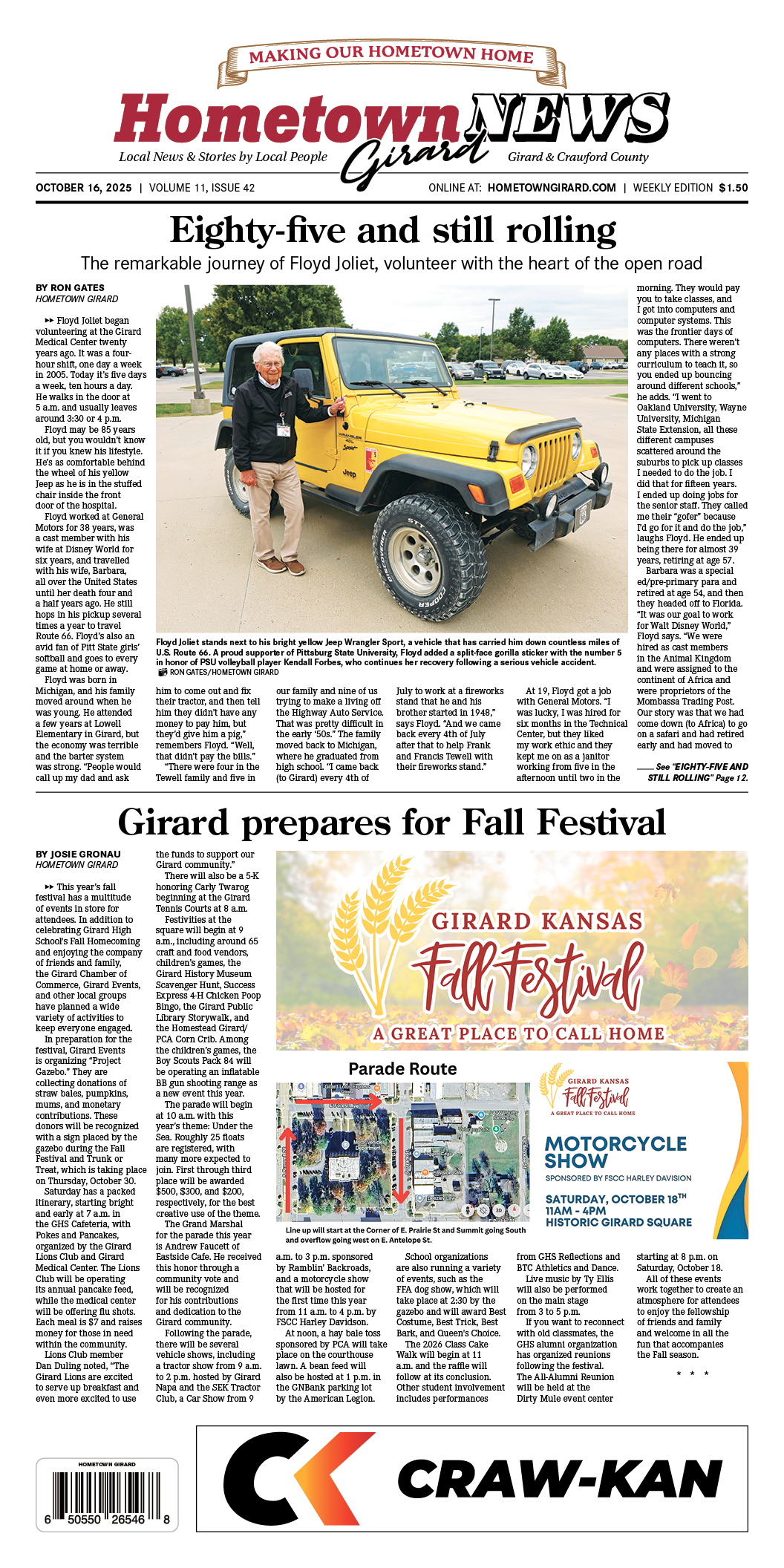 BY PHILIP STEVENS HOMETOWN GIRARD ▸▸ This Saturday, the Girard Fall Festival will have a special guest…